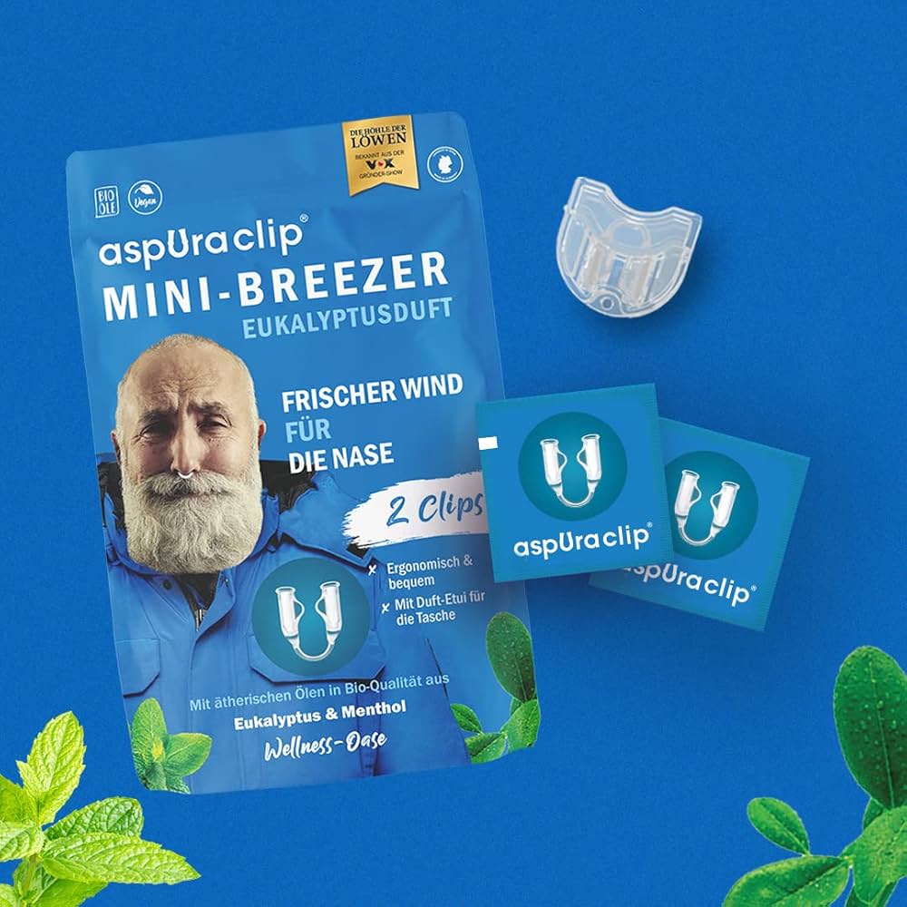 Experience the power of natural essential oils anywhere with Aspuraclip — the innovative German-made nasal clip designed to help you relax, breathe easier, and stay energized throughout your day.